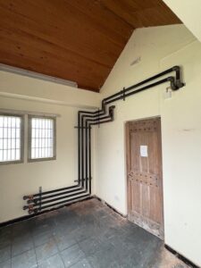 We have fitted replaced the old inefficient underfloor heating with a new ‘Air source Heat Pumps’ . The Installation including new radiator fitted throughout the church and an upgrade to the Electrical supplies & wiring.
